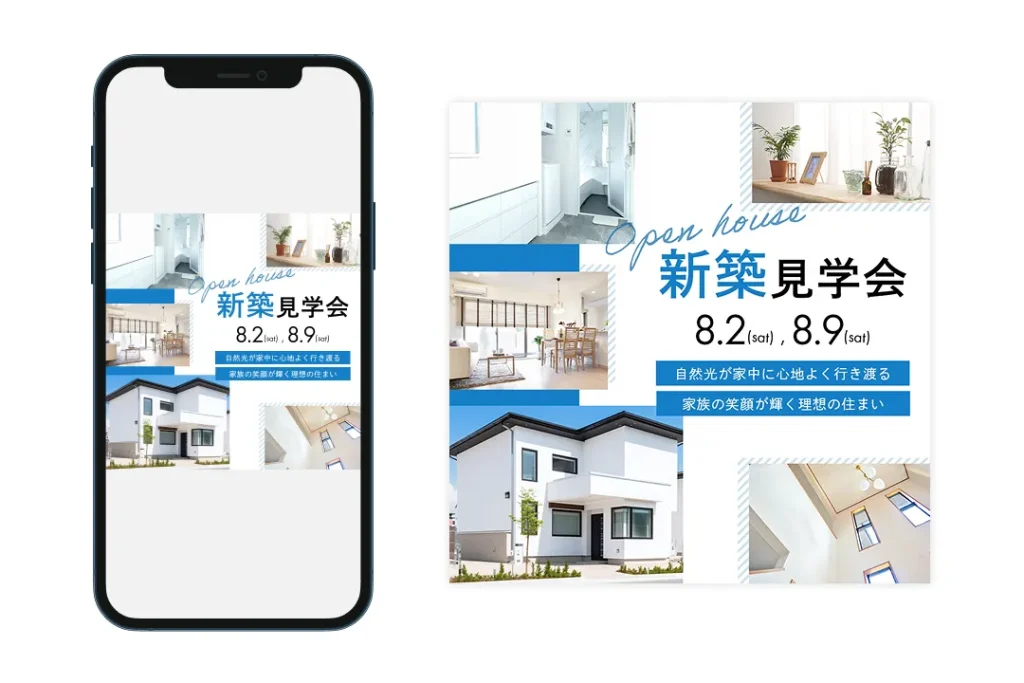業種 制作ジャンル サイズ 費用目安 制作日数 不動産 Instagram広告 1080px×1080px 5,000円 2日程度 制作ポイント 写真主導で“暮らし”を想像させるレイアウト 室内・外観・ディテール写真をリ […]